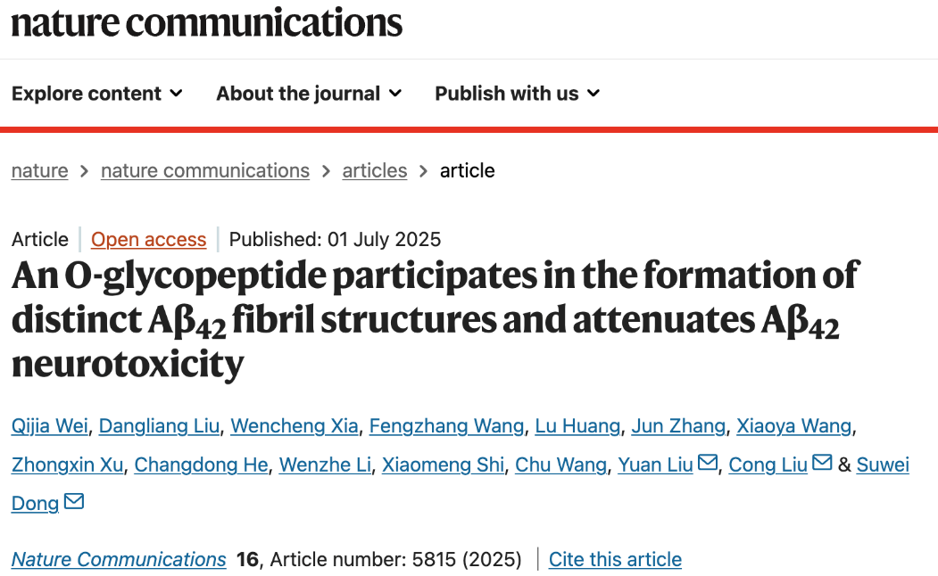 Nature Communications | 刘聪与合作者发现O-糖肽重塑Aβ聚集构象并抑制其病理毒性