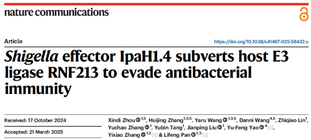 Nat Commun | 张一小团队与合作者发现福氏志贺氏菌的E3效应蛋白IpaH1.4拮抗人源免疫相关蛋白RNF213的新机制