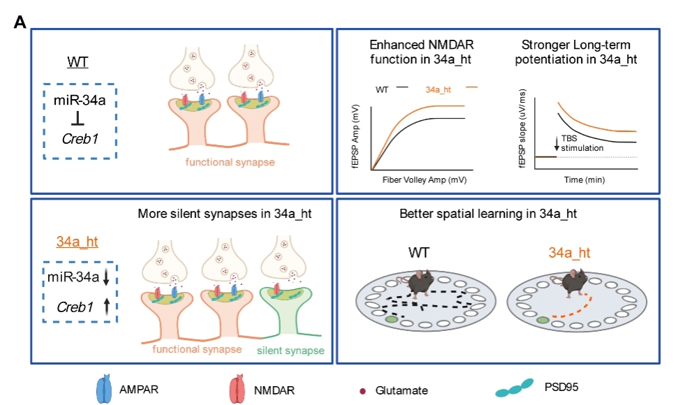 Prog. Neurobiol. | 何凯雯课题组发现miR-34a在成年小鼠海马体中调控沉默突触与突触可塑性