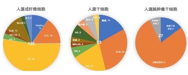 人源成纤维细胞(hFB):共125株,涵盖健康供体及多种疾病来源,具备详细的背景信息,适用于疾病建模和重编程研究。人源诱导多能干细胞(hiPSC):共63株,均由成纤维细胞重编程获得,其中13株已通过CRISPR/Cas9技术实现基因编辑,适用于疾病机制解析与功能研究。人源脑瘤细胞系:共27株,来源于患者脑瘤组织原代培养,涵盖瘤细胞及肿瘤干细胞,广泛用于肿瘤生物学研究。
