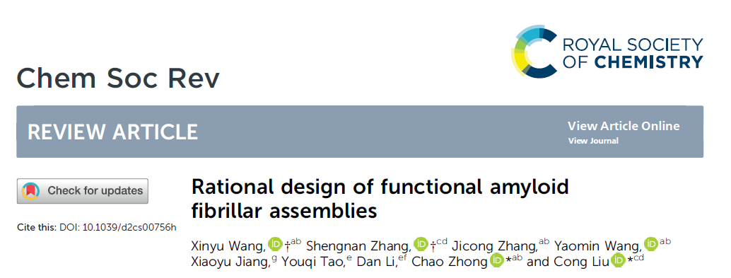 Chem Soc Rev | 刘聪综述功能性淀粉样聚集体理性设计的前沿研究