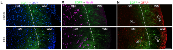 图2. 脊髓实质注射和谱系追踪揭示损伤后出现在灰质的Astro-GMii细胞亚群来