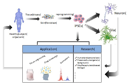 图一:患者来源的皮肤或者尿液细胞可以被重编程为诱导性干细胞(iPSCs)来进行疾病机理,药物筛选或者组织再生等研究。