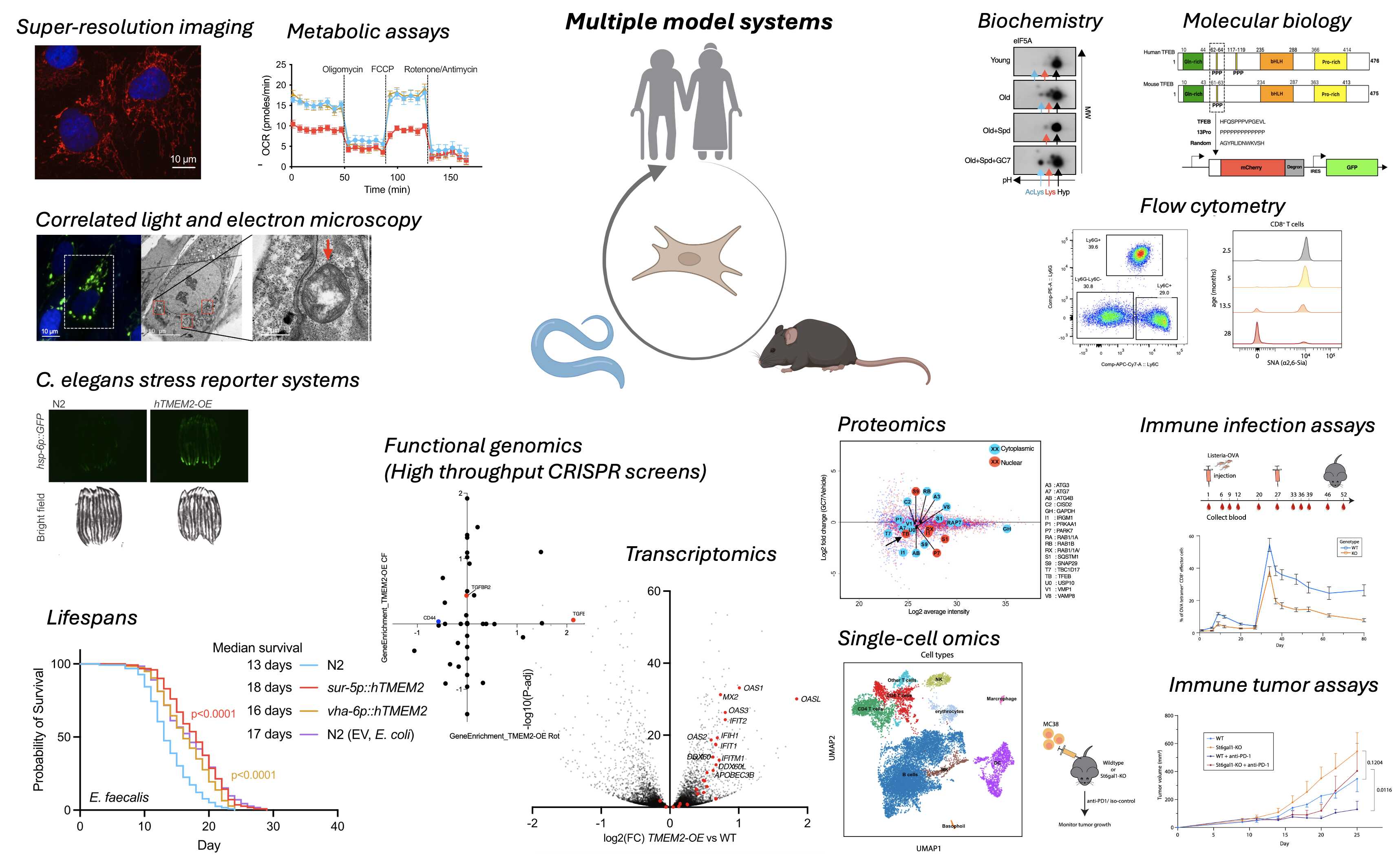 课题组的主要研究体系及技术方法。数据图截选自相关代表论文,模式图来自BioRender。