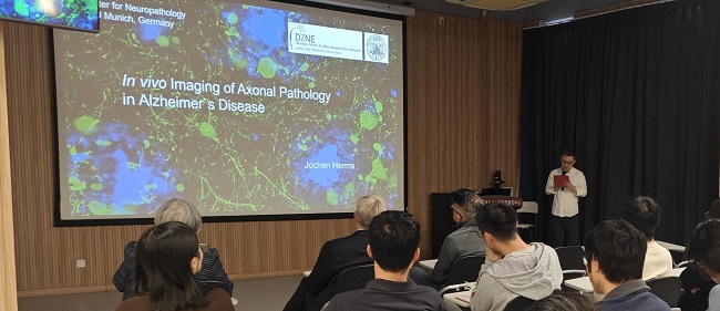 报告中,Jochen Herms教授着重介绍β淀粉样蛋白、Tau蛋白和小胶质细胞在神经元轴突损伤中扮演的关键角色和致病机理。他分享了阿尔茨海默病患者中蓝斑核神经元轴突受损的最新临床证据,以及利用嗅觉失调诊断阿尔茨海默病的新办法。另外还简要介绍德国慕尼黑大学病理中心的线上学习资料库和使用办法。Jochen Herms教授的报告引发现场师生的热烈讨论,本次报告增强了有机所师生对神经退行性疾病的认识,极大促进国际间的学术交流。