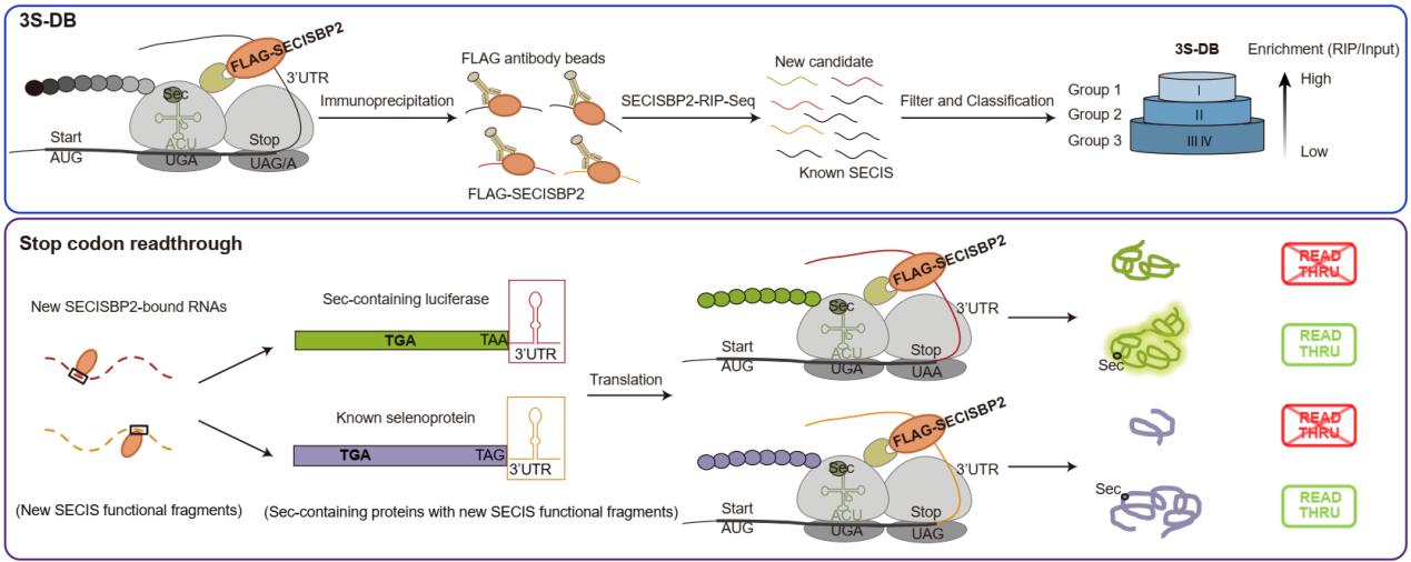 图2. 通过SECISBP2-RIP-Seq技术构建3S-DB数据库,揭示新型SECIS RNA元件促进UGA通读及Sec插入。