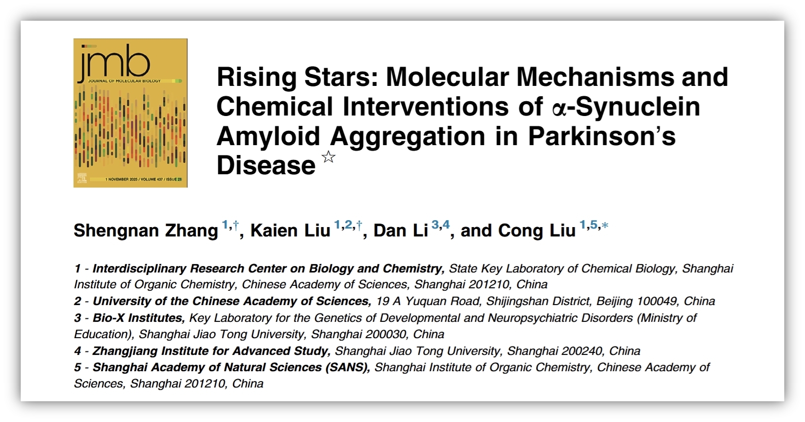 近日,中国科学院上海有机化学研究所生物与化学交叉研究中心刘聪研究员在《Journal of Molecular Biology》杂志的专刊 “Pioneers in Molecular Biology: China”受邀发表题为 “Rising Stars: Molecular Mechanisms and Chemical Interventions of α-Synuclein Amyloid Aggregation in Parkinson’s Disease”的综述性文章。帕金森病是仅次于阿尔茨海默病的第二大神经退行性疾病,其核心病理特征为α-syn异常聚集形成的淀粉样纤维。该综述文章回顾了刘聪团队十余年来围绕α-syn聚集展开的多学科交叉研究,涵盖高分辨率结构生物学、分子生物物理、生化与细胞功能分析及疾病动物模型研究。